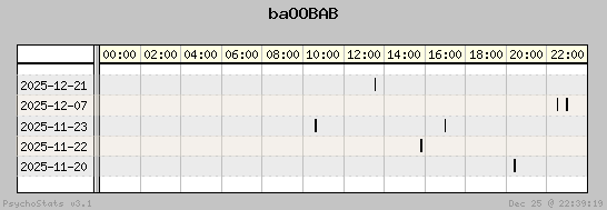 | 2025-12-07 | 0 | 0 | 0.00 | 0 | 0.00% | 39.58% | 00:03:31 | 998.22 |